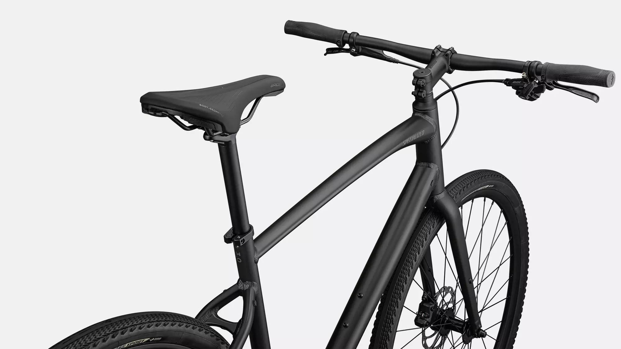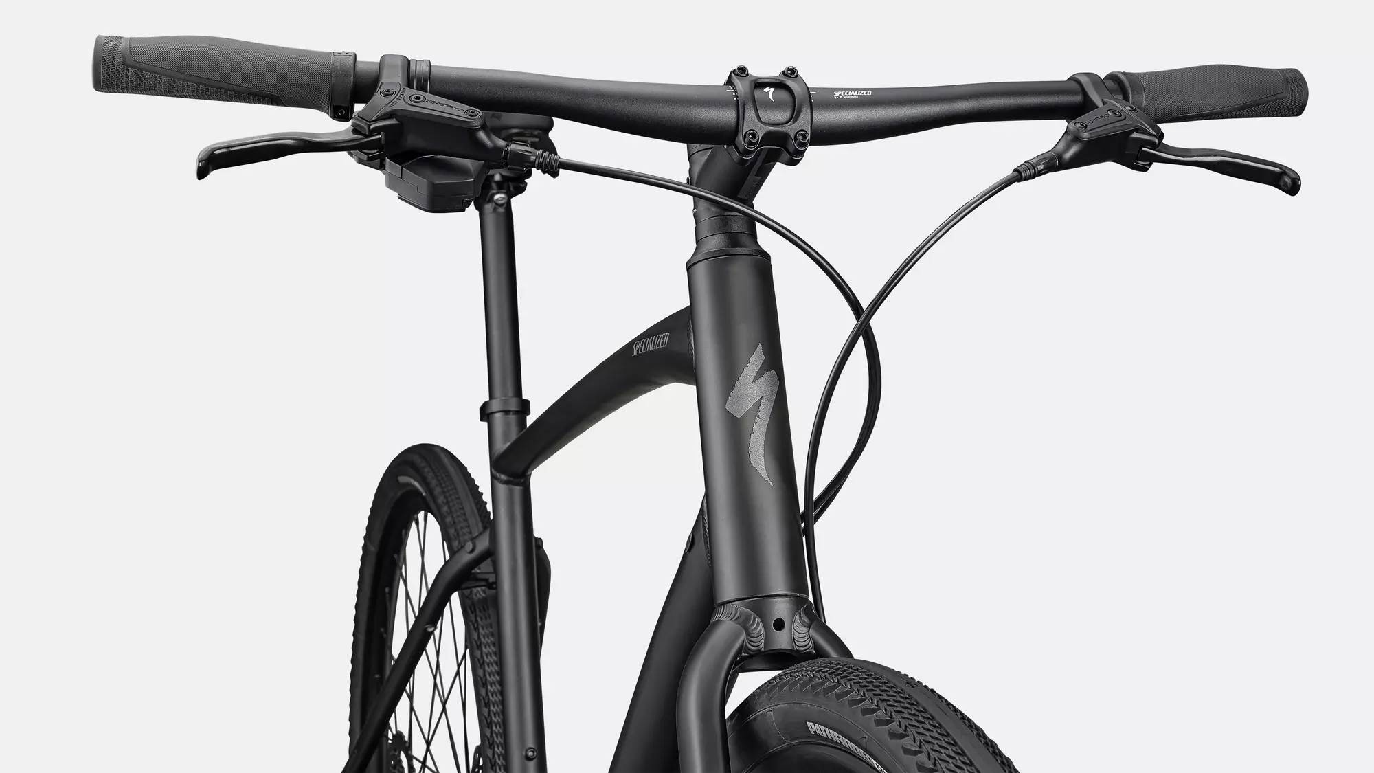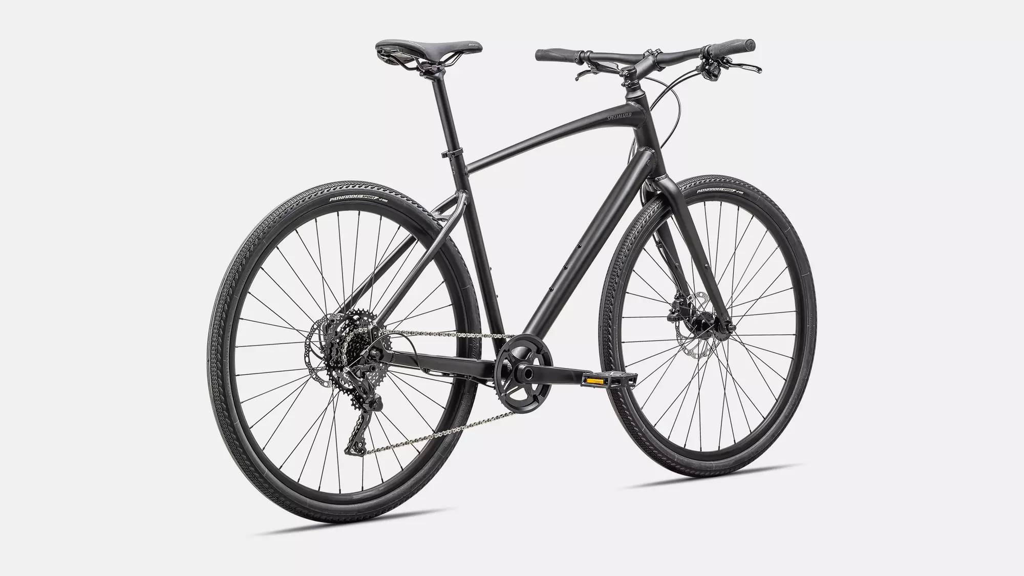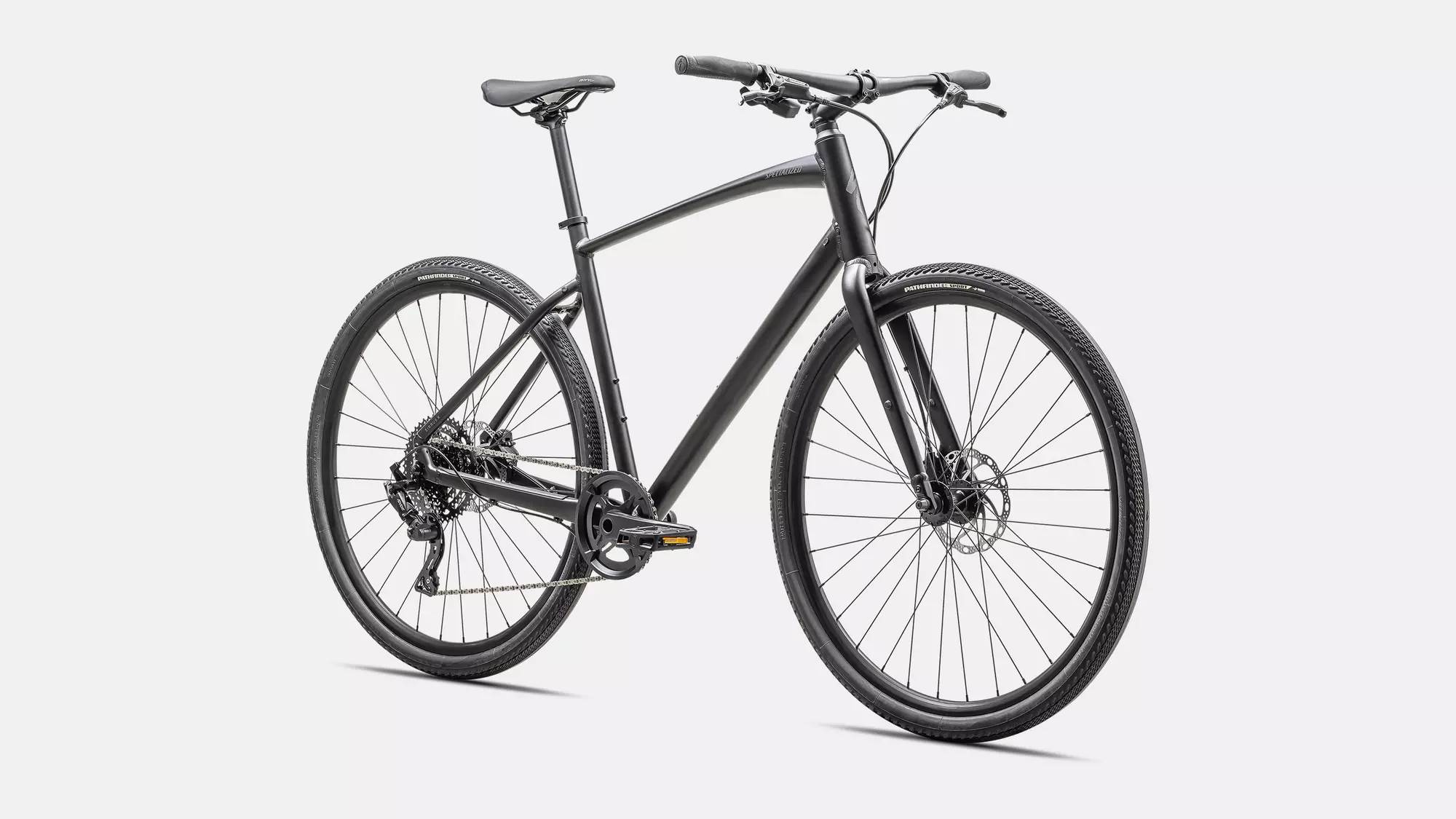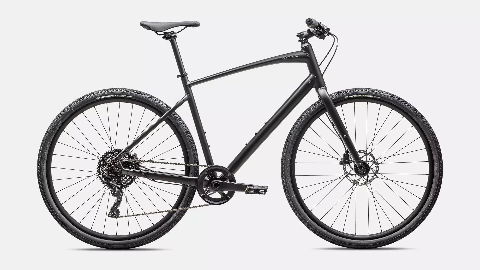 Specialized A1 Premium Aluminum, Fitness Geometry, butted tubing, internal cable routing, flat-mount disc, quick-release, Plug + Play rack/fender mounts